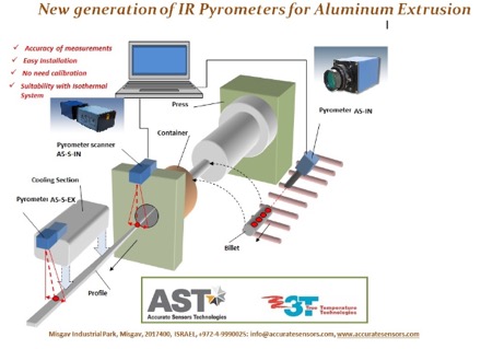 Al igual que en el proceso de forja, es importante conocer la temperatura de la barra antes del proceso para que no se funda el aluminio no dañemos la prensa o matriz durante la extrusión. Una vez extruido, el perfil sale de la matriz y debido a la fricción entre material y matriz se incrementa la temperatura de ambas partes. Es vital conocer la temperatura del perfil a la salida de la prensa, tanto para asegurar la calidad de aluminio como para evitar dañar la matriz.